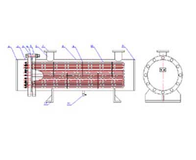 需要加熱的介質(zhì)由進(jìn)口進(jìn)入,通過折流板使介質(zhì)充分得到加熱,然后經(jīng)出口流出。為了使介質(zhì)的溫度達(dá)到要求的溫度,可以在筒體內(nèi)部或出口處安裝一個(gè)溫度傳感器采集介質(zhì)的溫度,配合數(shù)字溫度調(diào)節(jié)儀等控制電路來控制電加熱管。超過設(shè)定溫度停止工作,低于設(shè)定溫度啟動(dòng)。