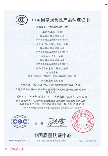 自助發(fā)卡機CCC證書