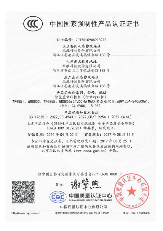 智能蓋章印控機(jī)CCC證書
