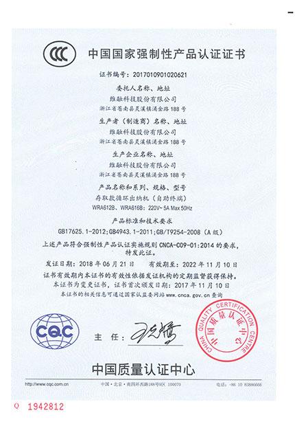 存取款循環(huán)出納機(WRA612)CCC證書