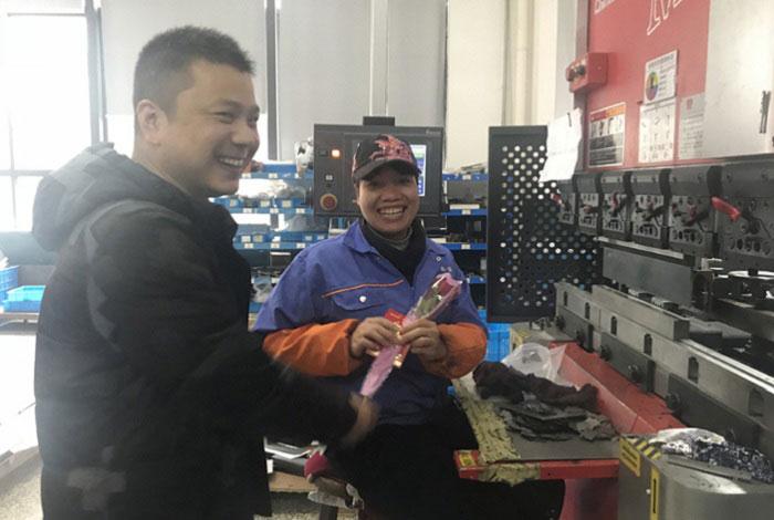 3月8日,維融股份組織開(kāi)展“三八”婦女節(jié)女職工慰問(wèn)活動(dòng)。公司黨支部、工會(huì)、女職委一行人,走近車間,為工作在各崗位的女職工送上鮮花和紅包,獻(xiàn)上節(jié)日祝福。據(jù)了解,“三八”婦女節(jié)給女職工發(fā)福利的傳統(tǒng)在維融中已持續(xù)了10多年。